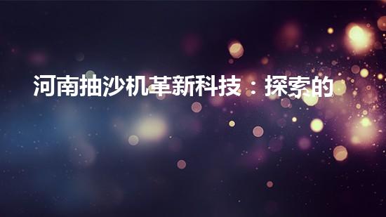 電抽沙機革新設計,提升效率!沙設備關鍵詞解析及市場前景探索